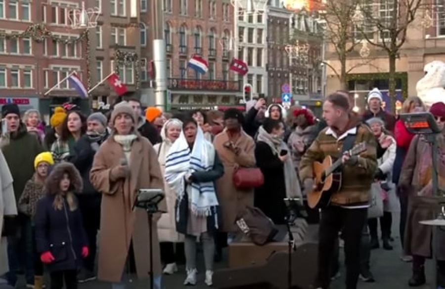Fortified by warm coats, scarves and hats in below freezing temperatures, these beautiful Dutch Christians were lifting up the name of Yeshua while also – bravely – praying for Israel and the world under the banner of a movement called Presence Praise.