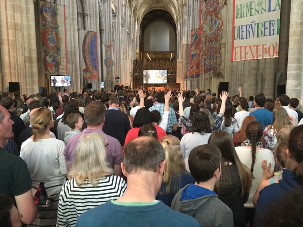 The Sunday evening celebration was the culmination of nine days of prayer events leading up to Pentecost, when Christians across the country were invited by the Archbishops of Canterbury and York to pray for the evangelisation of Britain. The weekend culminated in six 'Beacon events' with video links to Canterbury Cathedral where Archbishop Justin Welby gave a message based upon the Lord's prayer which he said was "reassuring enough to be on the lips of the dying and yet dangerous enough to be banned in cinemas".1