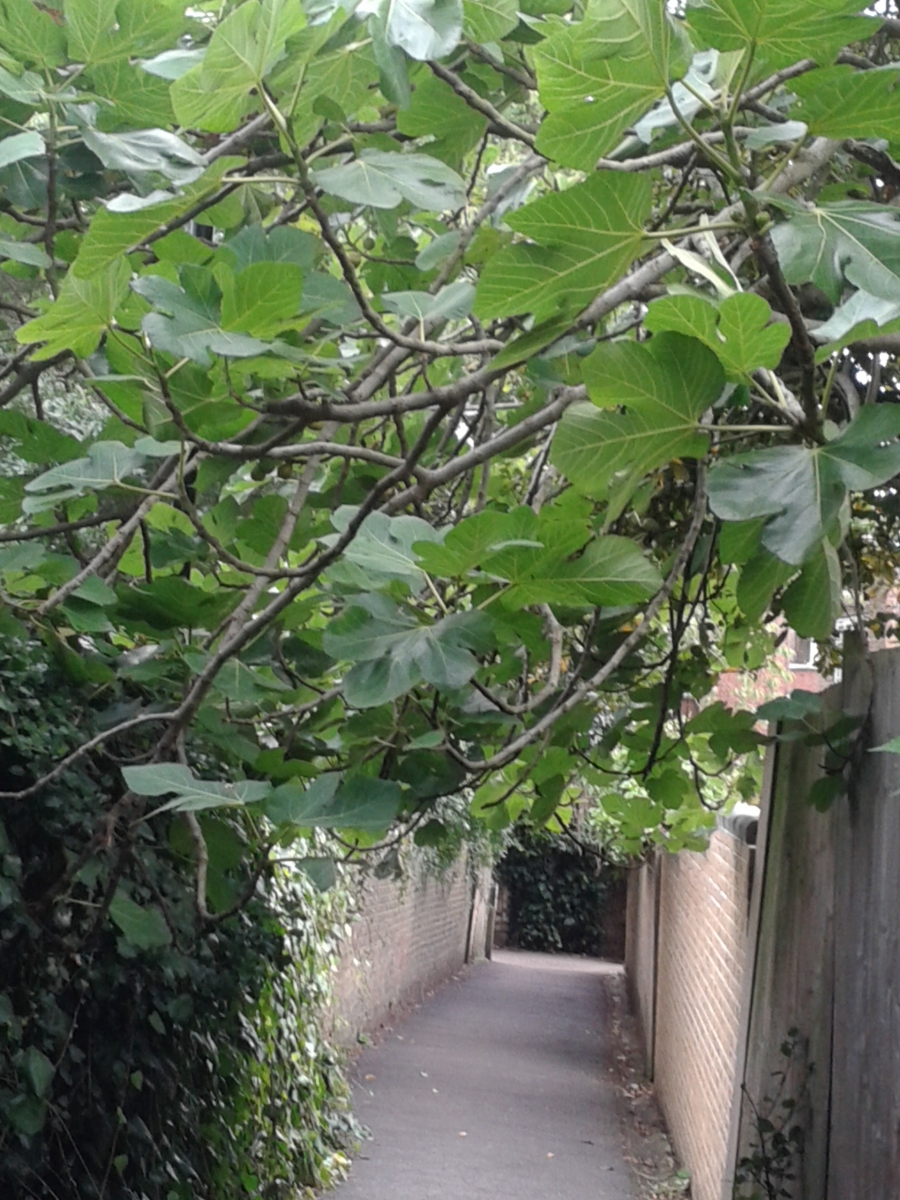 Yet the fig tree is still only a bud, not yet in full blossom; soon to be laden with fruit, like the one in Hampstead’s Spring Path (pictured).